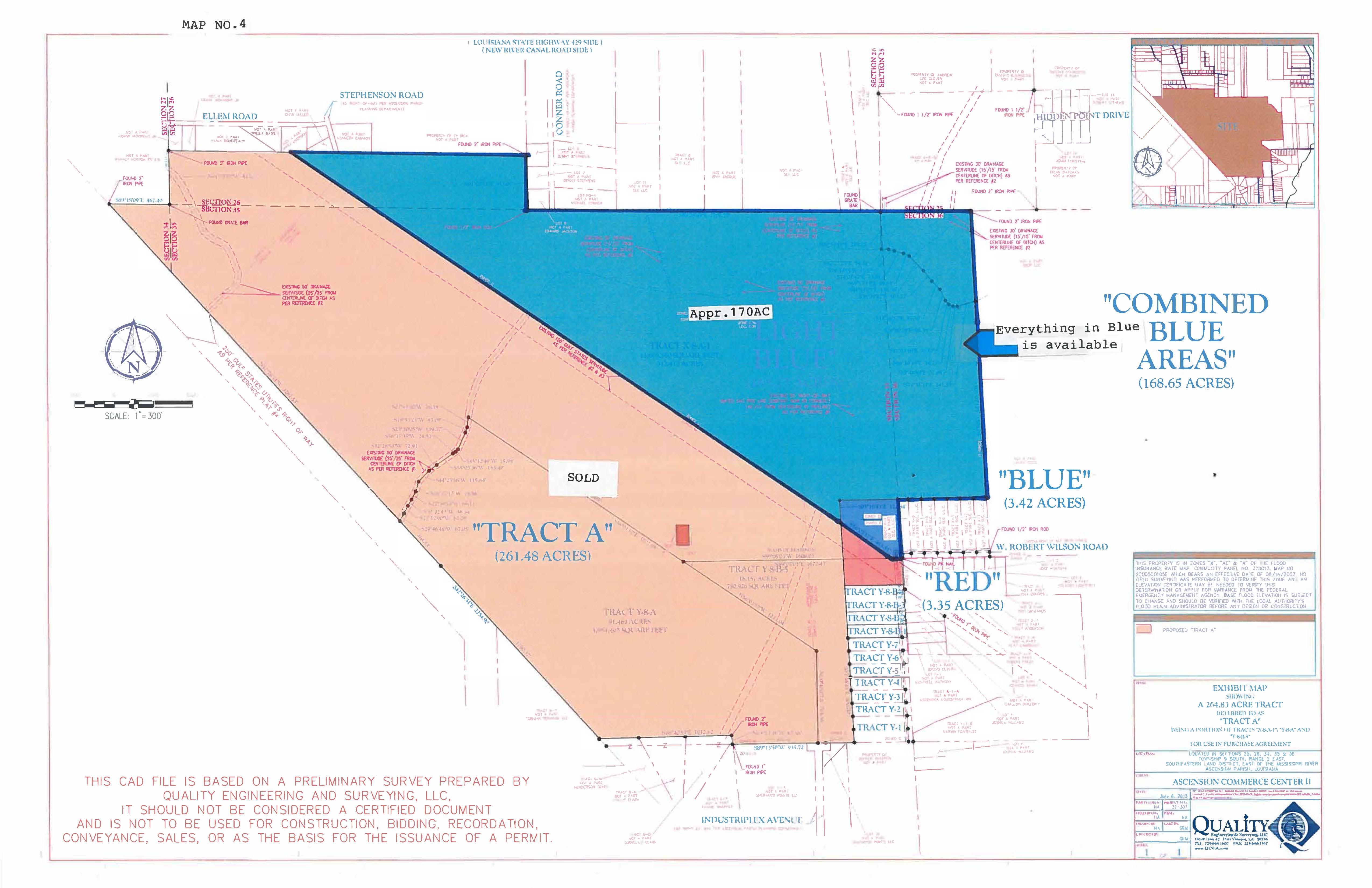 This 170 acre tract represents the largest percentage of the property available for medium industrial and light industrial use in Ascension Parish.