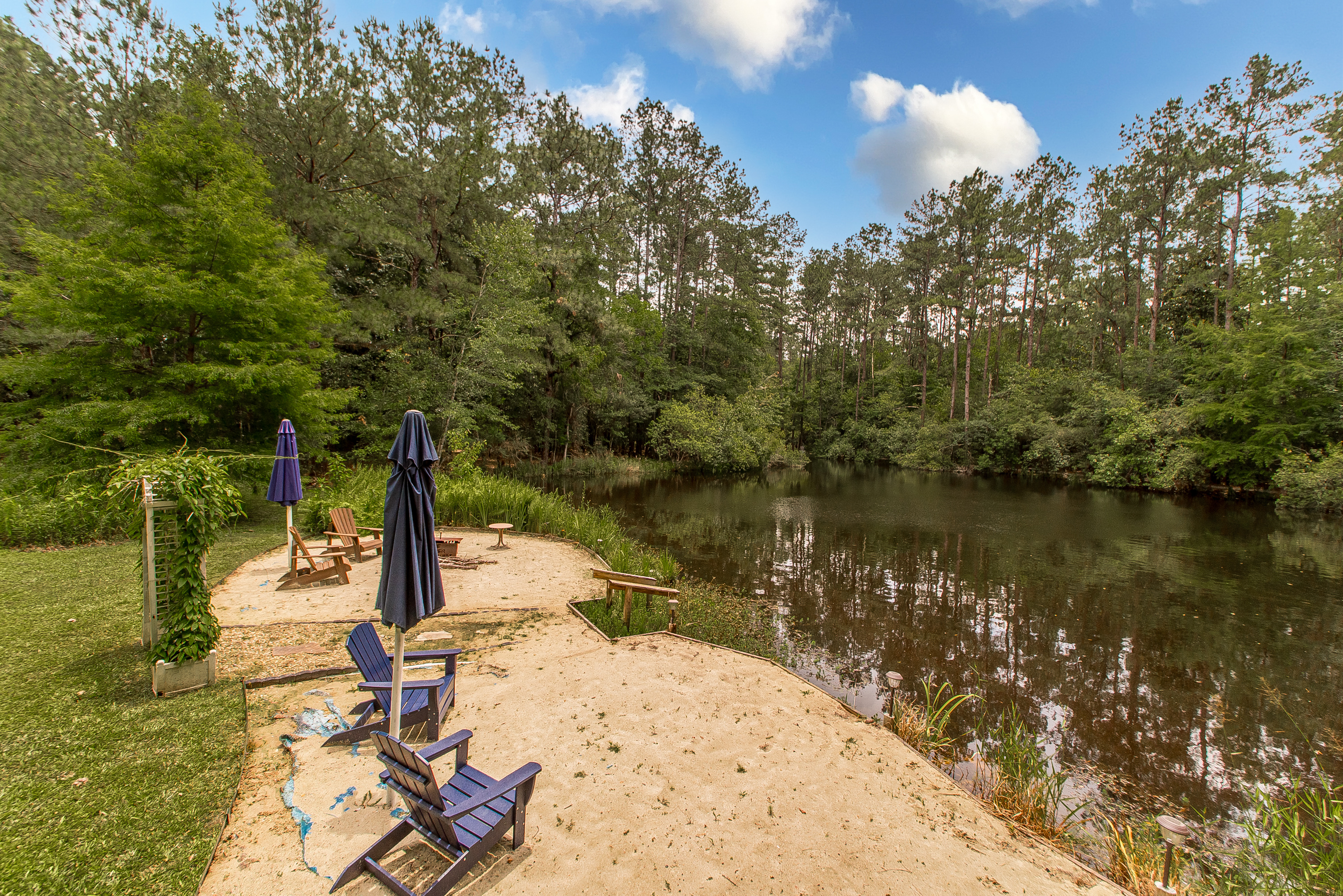 30 wooded acres with river frontage, multiple beach access points, ponds, and nature trails