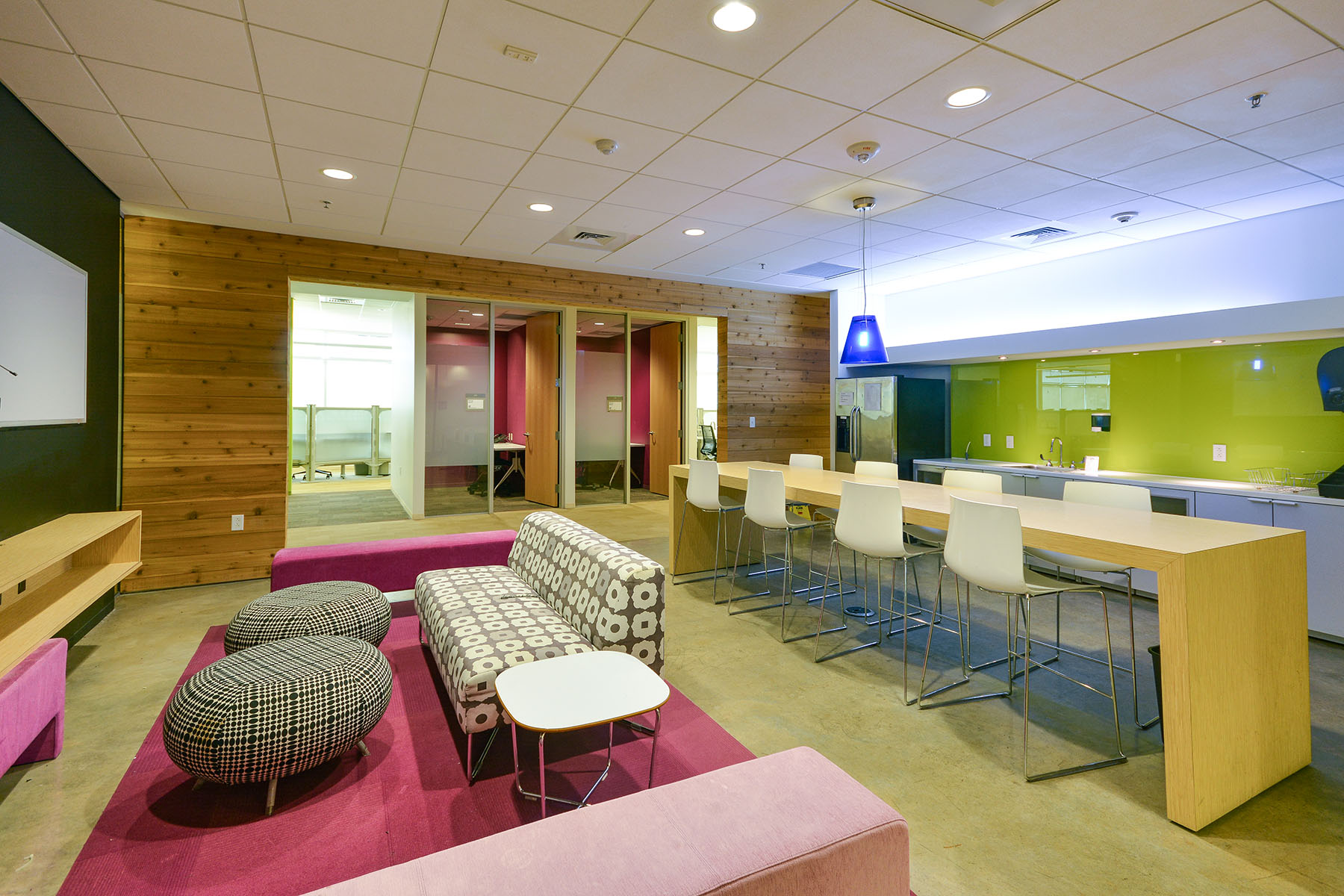 -Open workspaces with multiple conference rooms, break/kitchen areas (13), and private offices