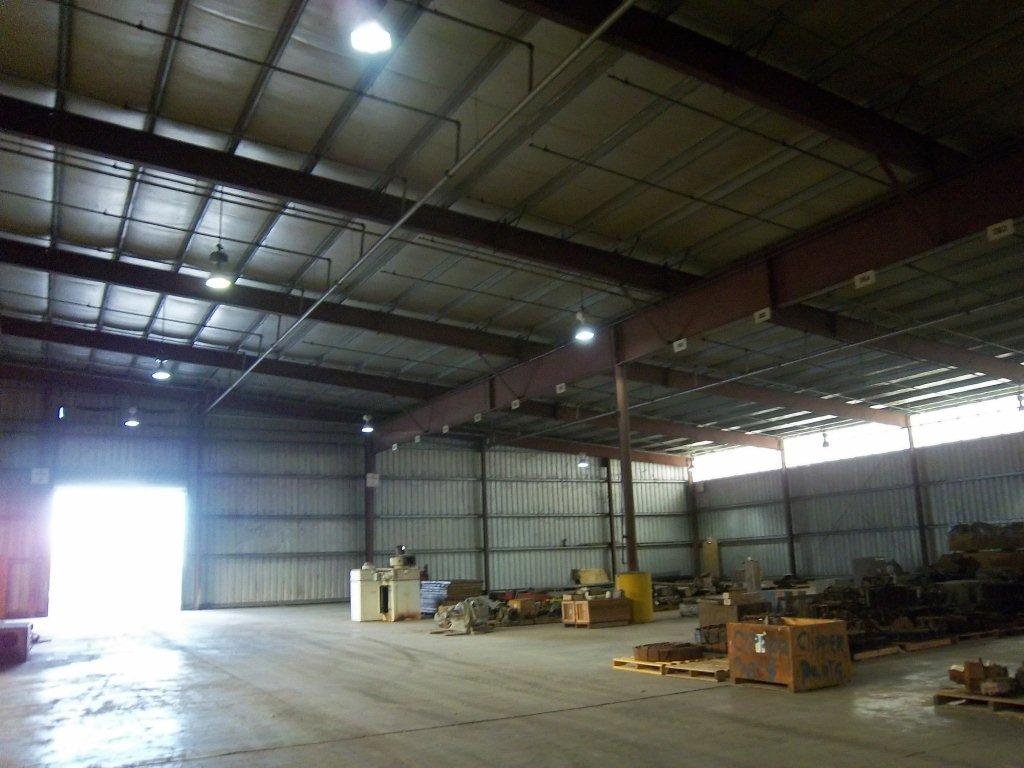 The "forming line" is 48ft. tall. Warehouse (100,000 square feet) has approximate ceiling height of 22-25 ft. Warehouse space is approximately 105,000.