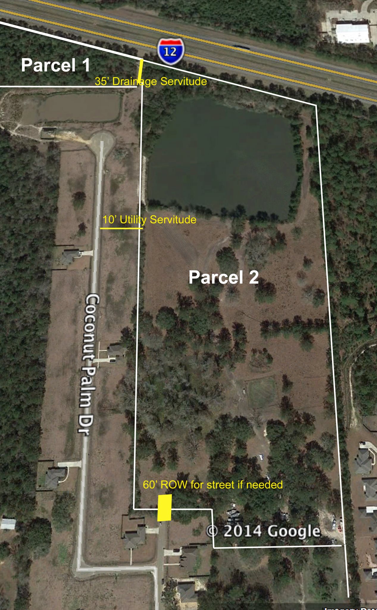 60.4 MilesFlood Zone: C. Multiple parcels: 21.1 acres zoned Business Park 1; 6.44 acres zoned Highway Commercial 2; 6 acres zoned A4 resident, all approximate. Undeveloped, with 1,600 feet frontage on south side of I-12. Ponds, meadows with groves of live oaks, pine. Spectacular view. See documents for full details.